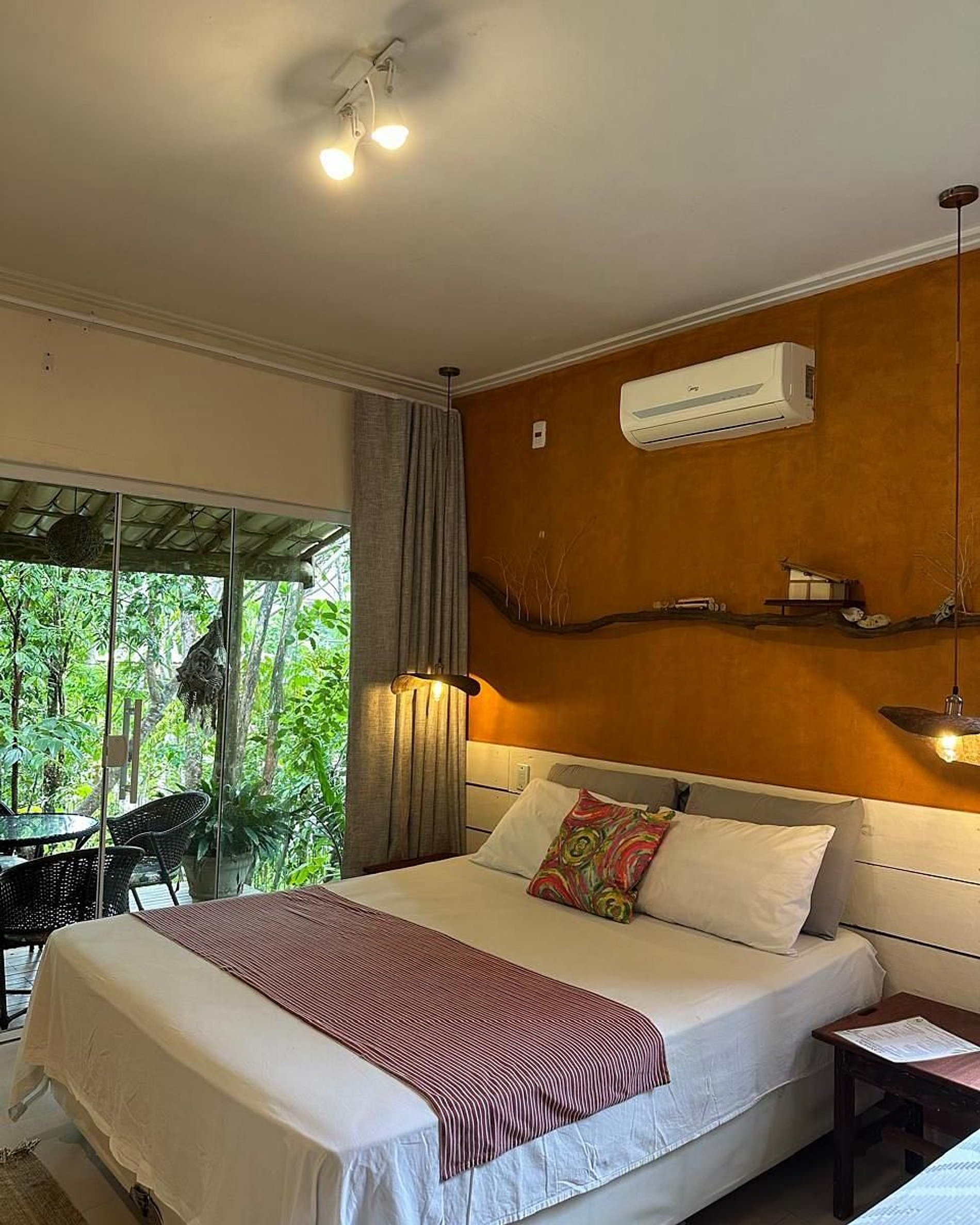 A suites Amescla e uma das suites do Aruana com uma vista perfeita da Natureza,por se encontra no final da nossa ampla varanda de frente para piscina. esta Suite toda equipada com a nessecidade do hospedes e supe acolhedora.